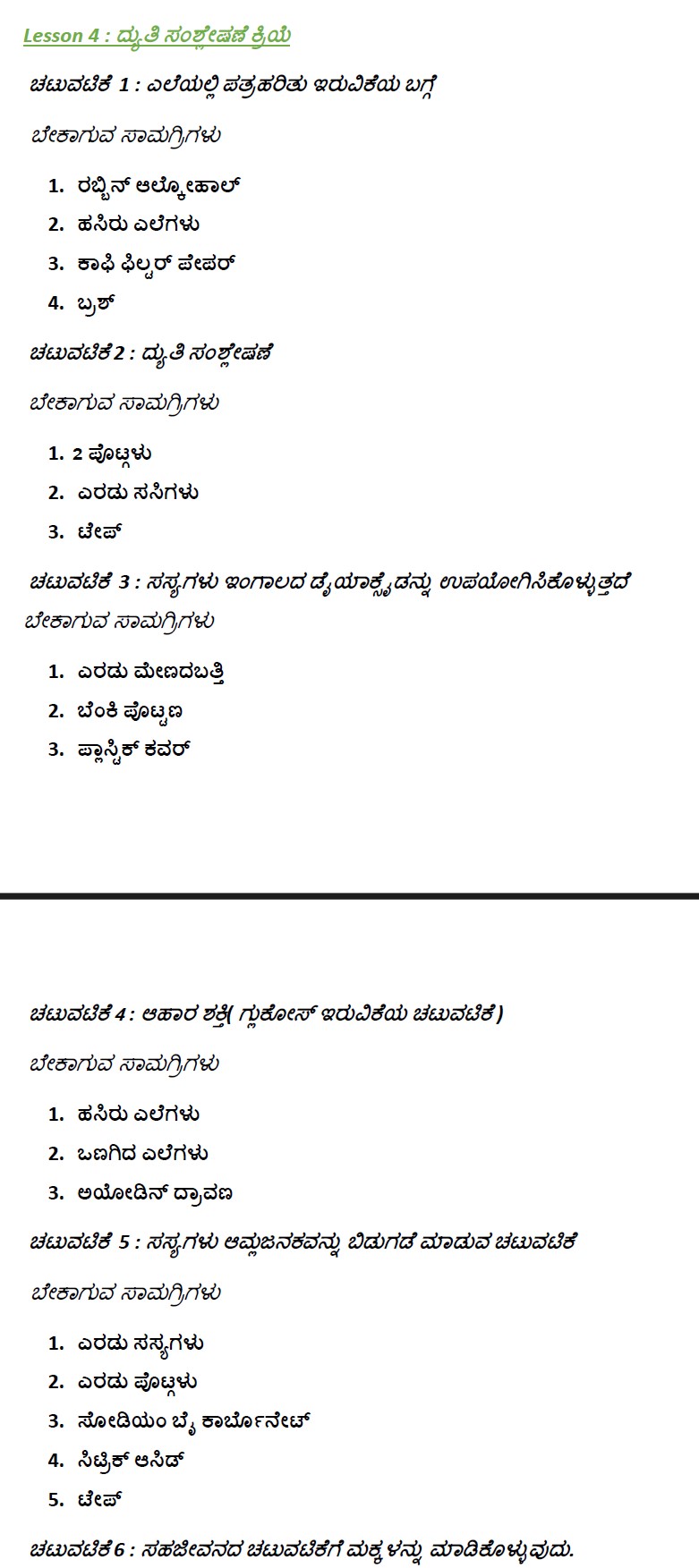 - ದ್ಯುತಿಸಂಶ್ಲೇಷಣೆ ಕ್ರಿಯೆಯ ರಾಸಾಯನಿಕ ಸೂತ್ರವನ್ನು ಕಲಿಯಬಹುದು.